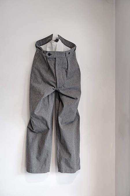 “とある店で見つけた1930年頃の フランスの古いワークパンツ。 いつまでも履きたい想いを形にしました。 今期の素材は初めてウールを使用。 フランスの鉄道員の古いパンツを 冬用のパンツに仕立てています。” 伊藤 環